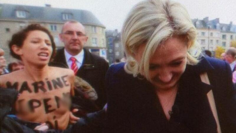عرقلت ناشطتان من حركة حركة "فيمن" تجمعا خطابيا لمرشحة حزب "الجبهة الوطنية" اليمين المتطرف مارين لوبان في قاعة كبيرة للحفلات في باريس.