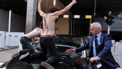 ناشطات ‘فيمن’ يهاجمن سيارة رئيس وزراء تونس في بروكسل