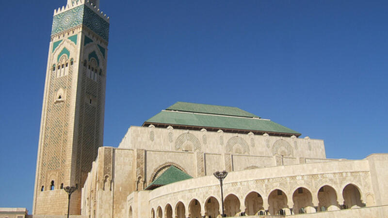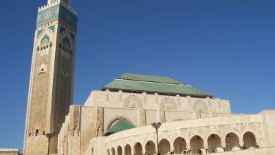 وداخل باحة المسجد التي لم يكتمل بناؤها لكن تقام فيها صلاة الجمعة، ضريح يضم الملك الراحل الحسن الثاني، ووالده السلطان محمد الخامس.