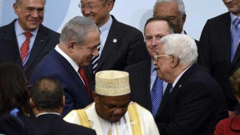 تصافح رئيس الوزراء الإسرائيلي بنيامين نتنياهو والرئيس الفلسطيني محمود عباس الاثنين في مؤتمر المناخ العالمي في باريس في أول لقاء بينهما منذ خمس سنوات.