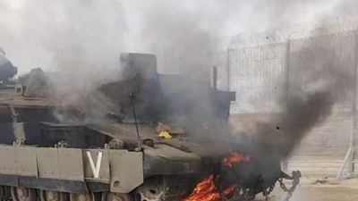 تدمير دبابة اسرائيلية من قبل المقاومة الفلسطينية