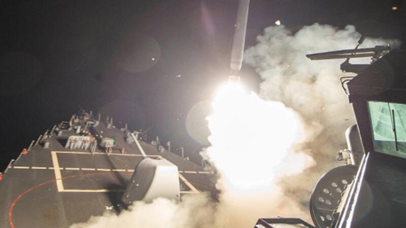 وأطلقت القوات الأمريكية 59 صاروخا من طراز كروز على قاعدة الشعيرات الجوية في وسط سوريا. وهي المرة الأولى التي تقوم فيها الولايات المتحدة بعمل عسكري مباشر ضد قوات الرئيس بشار الاسد.
