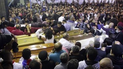ردَّد عدد من مشيعي ضحايا تفجير الكنيسة المرقسية بالاسكندرية هتافات نارية، مساء الاثنين، تطالب بإقالة وزير الداخلية، اللواء مجدي عبد الغفار، على خلفية اتهامات بالتقصير الأمني في حادثي تفجير الكنيسة، وكنيسة مار جرجس بمحافظة الغربية، الأحد، ما أسفر عن سقوط عشرات القتلى والجرحى في التفجيرين.