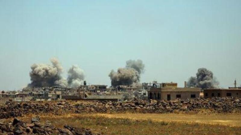 وقال نشطاء بالمعارضة إن الطائرات الحربية استهدفت بلدتي داعل وصيدا للمرة الأولى منذ بدء الهجوم. وذكر المرصد أن نحو 47 مدنيا لقوا مصرعهم منذ بدء الهجوم، لكن اتحاد منظمات الإغاثة والرعاية الطبية، وهو جمعية خيرية طبية تعمل في المنطقة، قال إن عدد القتلى وصل إلى 68.