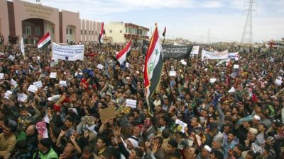 ونظم آلاف من السنة مظاهرات في شوارع مدن الموصل وسامراء وكركوك وفي محافظة الانبار يوم الجمعة.