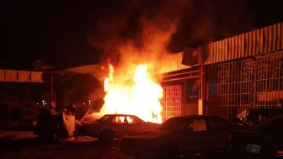 وأضاف أن القذيفة الصاروخية خلفت "أضرارا مادية بثلاث ورش صناعية واحتراق ثلاث مركبات مدنية".