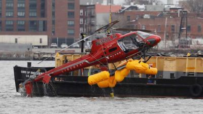 وتوفي الركاب الخمسة عندما سقطت المروحية في المياه بين حيي مانهاتن وكوينز بمدينة نيويورك ليلة الأحد الماضي.