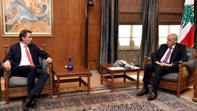 وقالت الوكالة اللبنانية الرسمية أن هوكشتاين عرض على عون "نتائج الاتصالات التي أجراها مع الجانب الإسرائيلي وبعض النقاط المتعلقة بالمفاوضات".