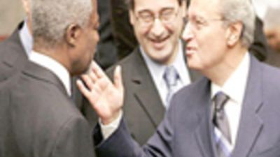 ورفض فرض المزيد من الضغوط التي يمكنها زعزعة الاستقرار في لبنان واشار الى امكانية استخدام المزيد من الاجراءات من قبل مجلس الامن في اشارة غير مباشرة الى العقوبات الدولية المحتملة. واكد عنان ان وزير الخارجية السوري فاروق الشرع اتصل به هاتفيا منذ يومين مؤكدا تعاون حكومته بشكل تام مع رئيس لجنة التحقيق الدولية في اغتيال رئيس الوزراء اللبناني السابق رفيق الحريري القاضي البلجيكي سيرج براميرتز ويتطلع للقائه في اسرع وقت ممكن - وردا على سؤال حث عنان السوريين على التعاون بشكل كامل ودون اي تحفظات واكد ان سوريا ابدت استجابتها لذلك.