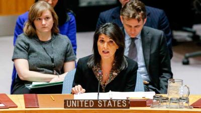 المندوبة الأمريكية لم تكتف برسائل التهديد التي بعثتها لنظرائها في المنظمة الدولية في أول سابقة من نوعها في تاريخ الأمم المتحدة.