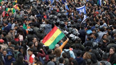 تمردت وحدات من الشرطة البوليفية الجمعة في مدن سوكري (جنوب-شرق) وسانتا كروز (شرق) وكوتشابامبا (وسط)، وامتنعت عن الامتثال لأوامر قيادتها التي تطلب قمع تظاهرات مستمرة منذ نحو ثلاثة أسابيع تُعارض إعادة انتخاب الرئيس ايفو موراليس.
