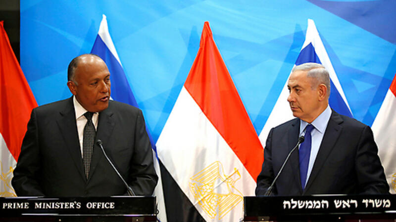 وزير الخارجية المصري سامح شكري (يسار) ورئيس الوزراء الإسرائيلي بنيامين نتنياهو