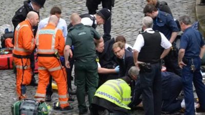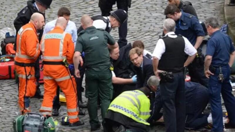 وقتل خمسة أشخاص وأصيب نحو 40 في لندن أمس الأربعاء بعد أن دهست سيارة عددا من المارة وطعن مهاجم شرطيا قرب البرلمان البريطاني في هجوم وصفته الشرطة بأنه "إرهابي".