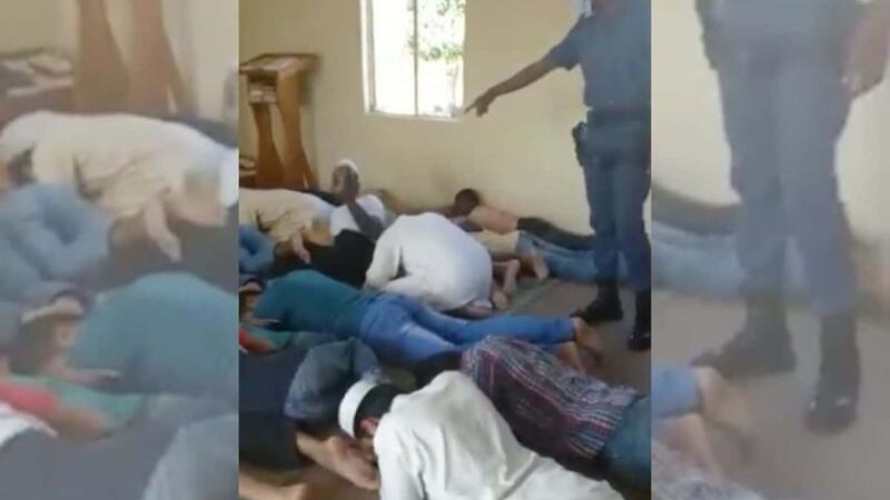 ويظهر فيديو تم نشره على وسائل التواصل الاجتماعي أكدت السلطات صحّته، عناصر الشرطة وهم يدخلون قاعة يؤدي فيها نحو 20 مسلما الصلاة، ويأمرونهم بالانبطاح أرضا لتوقيفهم.
