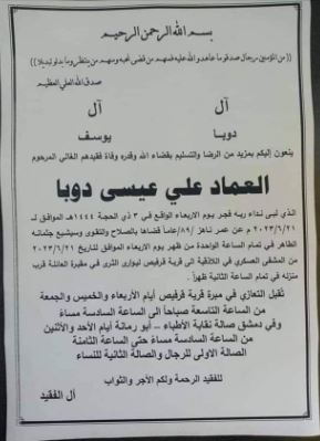 توفي في دمشق العماد علي دوبا رئيس الاستخبارات العسكرية الأسبق عن 90 عاما وهو أحد أبرز أركان نظام الأسد الاب  الذي كان يشكل اسمه رعبا في قلوب السوريين حيث مارس خلال عمله انتهاكات بحق السوريين، منها مشاركته بمجزرة حماة ومن ثم التآمر على ابعاد والاطاحة برفعت الاسد شقيق الرئيس السوري حافظ الاسد الذي كان يحاول الانقلاب عليه