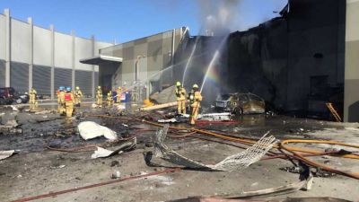 وكافح رجال الاطفاء لساعات لإخماد الحريق الذي أتى على الطائرة، وكذلك على أجزاء من المركز التجاري ومرآب سيارات مجاور.