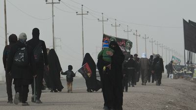 ويتوافد منذ عدة ايام حشود من الزوار الشيعة من مناطق عدة من العراق لاحياء ذكرى اربعين الامام الحسين في كربلاء (110 كلم جنوب بغداد).