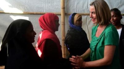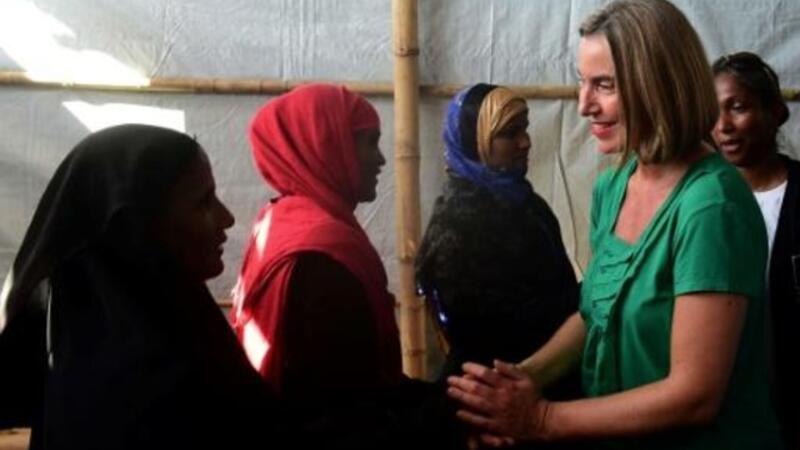 وزارت وزيرة خارجية الاتحاد الأوروبي مخيمات اللاجئين برفقة وزراء خارجية كل من بنغلادش واليابان والسويد وألمانيا قبل انعقاد اجتماع وزاري آسيوي-أوروبي في بورما يومي الاثنين والثلاثاء.