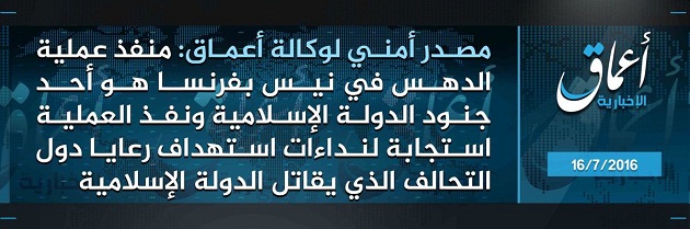 وكالة "أعماق" الاخبارية: داعش يتبنى هجوم نيس