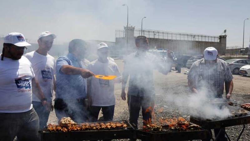 أقام يمينون إسرائيليون حفل شواء، ظهر الخميس، بالقرب من أحد السجون التي يخوض فيها فلسطينيون، إضراباً عن الطعام.