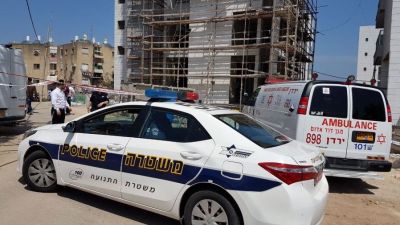 سيارتا شرطة واسعاف اسرائيليتان في موقع الحدث