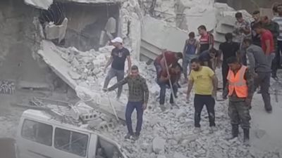 10 قتلى جلهم نساء وأطفال بانهيار بناية سكنية في حلب