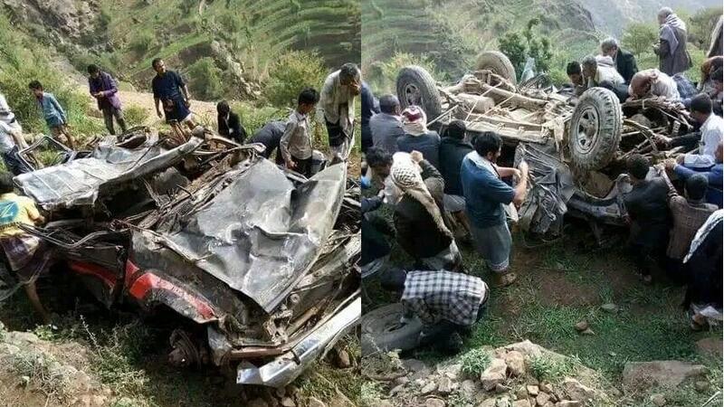توفي 11 شخصا بينهم 3 نساء وذلك من خلال سقوط سيارتهم التي كانوا يستقلونها في منحدر جبلي سحيق في مديرية وصاب العالي التابعة لمحافظة ذمار في اليمن.