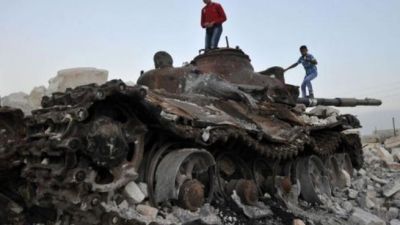 دبابة للجيش السوري تم اعطابها من قبل الجيش الحر