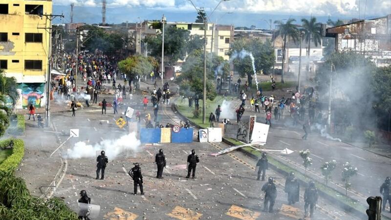 قُتل نحو 20 شخصاً وأصيب أكثر من 800 بجروح في كولومبيا في أعمال عنف خلال خمسة أيّام من التظاهرات التي خرجت احتجاجًا على مشروع إصلاح ضريبي قدّمته الحكومة اليمينيّة، في وقتٍ قدّم وزير المال استقالته الاثنين.