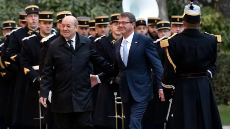 وزير الدفاع الفرنسي جان- ايف لودريان مستقبلا نظيره الاميركي اشتون كارتر