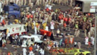 وقال مسؤولون ان الحجاج سُحقوا تحت الأقدام عند المدخل الشرقي لجسر الجمرات حينما تدافعوا لرمي الجمرات عقب الظهر في منى.