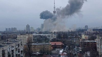 هزت انفجارات عنيفة وسط العاصمة الأوكرانية كييف، صباح اليوم الأحد، تسببت بإندلاع حريق، وانبعاث سحابة كبيرة من الدخان الرمادي، جراء قصف روسي.