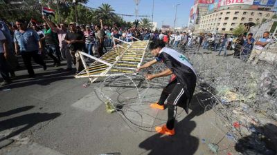 واستخدمت قوات الأمن العراقية الرصاص الحي والمطاطي والغاز المسيل للدموع، لإخراج المحتجين من المنطقة التي تضم المباني الحكومية والبرلمان وسفارات.