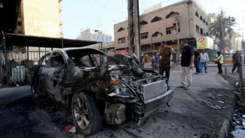 حطام سيارة انفجرت في وسط بغداد