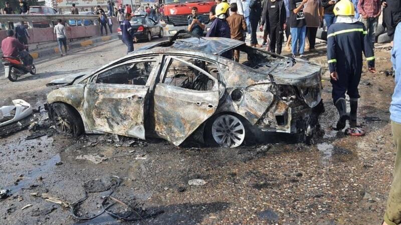 وأظهرت صور جرى تداولها النيران وقد اشتعلت في دراجة نارية وسيارة أخرى، بالقرب من أحد الجسور في البصرة.