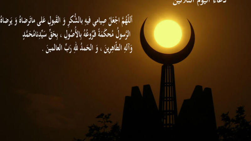 دعاء اليوم الثّلاثين من رمضان : اَللّـهُمَّ اجْعَلْ صِيامى فيهِ بِالشُّكْرِ وَالْقَبُولِ عَلى ما تَرْضاهُ وَيَرْضاهُ الرَّسُولُ، مُحْكَمَةً فُرُوعُهُ بِالاُْصُولِ، بِحَقِّ سَيِّدِنا مُحَمَّد وَآلِهِ الطّاهِرينَ، وَالْحَمْدُ للهِ رَبِّ الْعالَمينَ .
