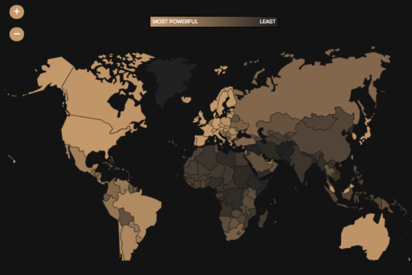 ويحدد المؤشر “قوة جواز سفر” من خلال عدد الدول التي يمكن لحامله أن يزورها من دون تأشيرة، وذلك من خلال خلق صورة مذهلة لكيفية توزع هذه القوة في جميع أنحاء العالم، وتظهر الدول التي لديها جوازات سفر أقوى بالألوان الفاتحة في حين يمثل اللون الأكثر قتامة الدول التي لديها جوازات سفر أضعف: