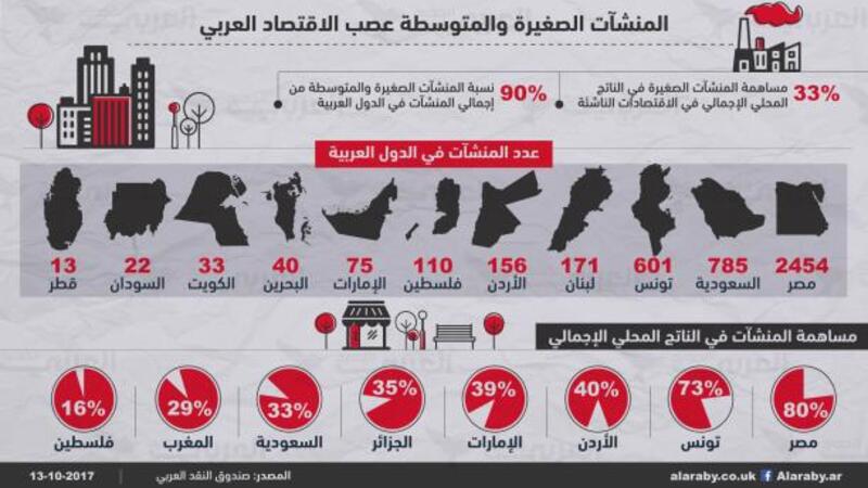 كما بيّنت الدراسة أن المنشآت الصغيرة والمتوسطة، تقدر نسبتها من إجمالي عدد المنشآت في الدول العربية بين 90 و99%.