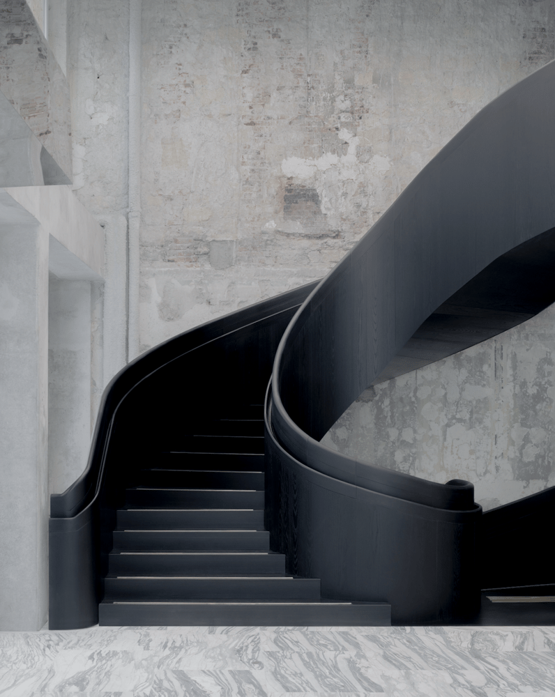 ومن بين المعالم البارزة الكثيرة في هذا البوتيك والأكثر تميزا، لا بد من ذكر الصالة المزدوجة الإرتفاع التي تضم منحوتة بضوء النيون للفنانة سيريث وين إيفانز بتكليف من دار سان لوران، ومجموعة متنوعة من الأسطح الجذابة والسلالم المنحنية من الخشب المطلي باللون الأسود، بالإضافة إلى حديقة خاصة بتصميم يجمع ما بين اللمسات الباريسية ال"مينيماليست" ليستطيع الزوار الإسترخاء فيها. هذا وتنتشر في الأرجاء قطع أثاث من دونالد جود وجداريات تصويرية ولوحات من تصوير المصور العالمي "يورجن تيلير" تنتشر على جدران المتجر.