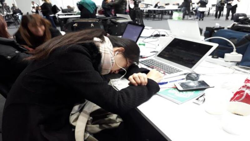وهناك مجموعة مراسلين أجانب، بينهم صحافية صينية غفَت على "ألحان" بعض المتحدثين، وإلى جانبها مباشرة مراسلة لبنانية مكتوفة اليدين تحاول تدفئة نفسها في قاعة ضخمة باردة لم تزدها خطابات القمة إلا برودة تكاد تتجاوز درجتها صقيع الثلج في الخارج.