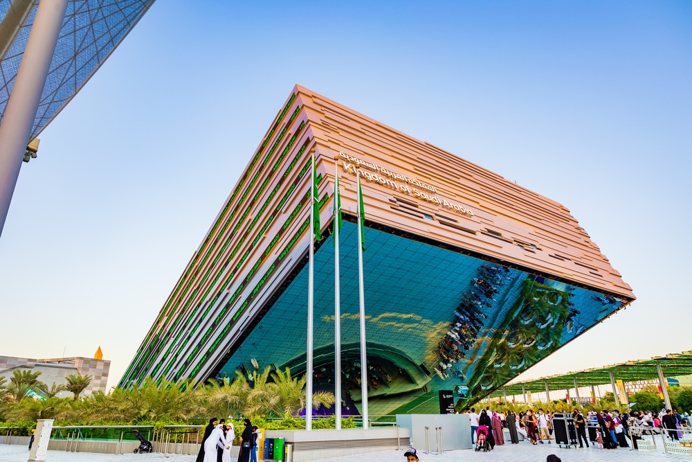 يعد جناح المملكة العربية السعودية ثاني أكبر جناح في إكسبو 2020 دبي ، وهو بمثابة وسيلة لتسليط الضوء على الثقافة السعودية والإنجازات. حتى قبل بدء معرض إكسبو 2020 دبي ، فاز الجناح بالفعل بثلاثة أرقام قياسية في موسوعة جينيس لأكبر شاشة مرآة LED ، وأطول ميزة مائية تفاعلية ، وأكبر شاشة إضاءة تفاعلية! تم تصميم الجناح من قبل Boris Micka Associates بطريقة مبتكرة ومستدامة. سارع جناح المملكة العربية السعودية في جذب الزوار حيث سجل 23 ألف زيارة في يوم واحد فقط!