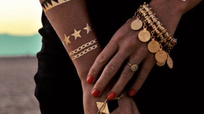 وتعتمد هذه الوشوم على ورقة ذهبية اللون في إنشائها بشكلٍ جميل ومميز، مع إمكانية رسم شكل الوشم على برامج التصميم المختلفة ليتم قصّه وتخصيصه بعد ذلك، ومن الممكن أن يحتوي الوشم على شريحة NFC أو أضواء LED تزيد من العنصر الجمالي له.