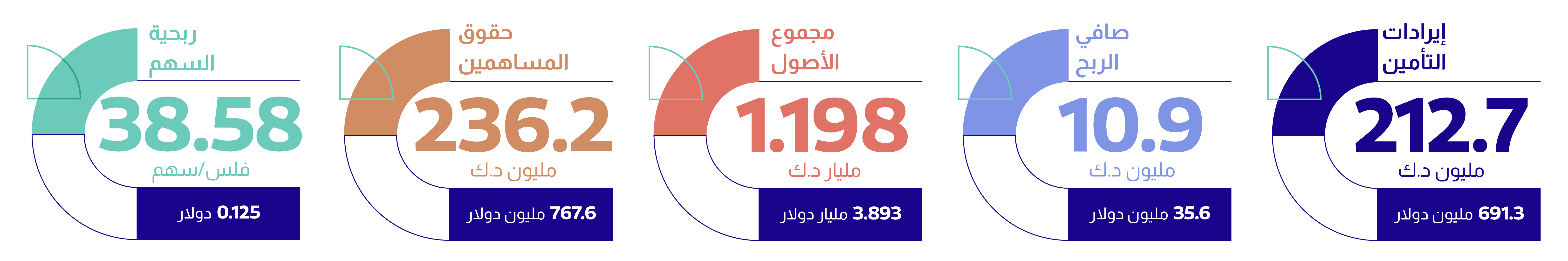 هذا وقد بلغت قيمة إيرادات التأمين 212.7 مليون دينار كويتي (691.3 مليون دولار أمريكي) بالمقارنة مع 189.2 مليون دينار كويتي (614.9 مليون دولار أمريكي) عن نفس الفترة من العام السابق.