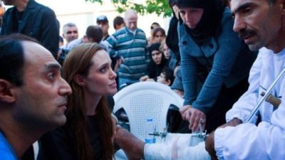 "البعض تمنى أن يكون لاجئاً ليحظى بمرآها و البعض تمنى أن يعود طفلاً ليتلقى قبلة منها ، آخرون كانت أحلامهم أكبر فتمنوا أن يمسخوا براد بيت فليس يكفيهم ” الوش و بدهم العش ” ، و نحن لا نستطيع إلا أن نطلب من الممثلة العالمية فائقة الحنان أن تعرج على سوريا لترى مئات الآلاف من العراقيين الذين شردتهم حكومتها في حربها الباغية و وجدوا في سوريا حضناً لهم رغم سوء أحوالها فما تاجرت بمعاناتهم و لا اشتكت و لا أغلقت حدودها بوجههم فكانت لهم أماً حنوناً".