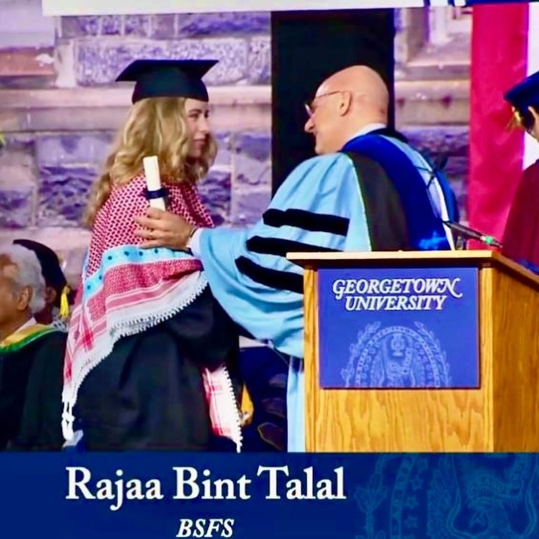 وفي2023، تخرج الأمير محمد بن طلال، الابن البكر للأمير طلال، من جامعة جورجتاون.