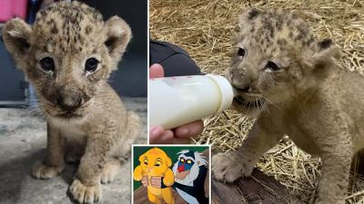 ونشرت حديقة الحيوانات تسجيلًا مصورًا يظهر الشبل الصغير المسمى "سيمبا" تيمنًا بفيلم "ديزني" الشهير "الأسد الملك-Lion King وهو يتغذى بعبوة الحليب ويلهو بالكرة.