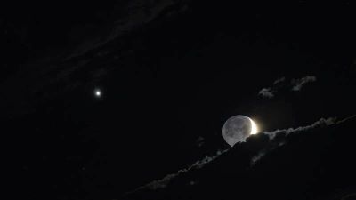 ويوم الأحد الماضي، كان الهلال البالغ من العمر أربعة أيام على بُعد درجتين من كوكب الزهرة في حدث سماوي نادر.