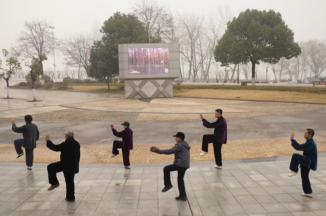وبعد عام، وفي وقت مبكر من صباح يوم السبت، 23 يناير 2021، كان سكان المدينة التي سُميت بـ"معقل الوباء" يركضون ويمارسون رياضة "تاي تشي" في حديقة يكسوها الضباب بجوار نهر اليانغتسي العظيم.