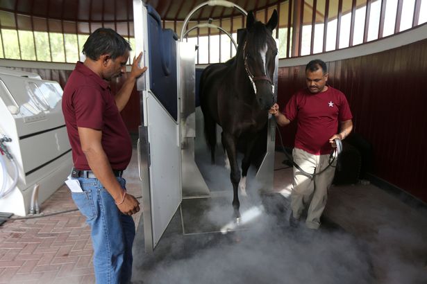 وتقول الشركة بإنها توفر الآن أول مكان مجهز لعلاج الخيول بالتبريد يغطي جسم الحيوان بالكامل.