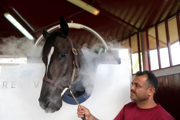 وقامت شركة "ريفايف كريوثيرابي/ Revive Cryotherapy" ومقرها دبي بمعالجة الخيول بالتبريد الذي يحيط بالجسم في رذاذ بارد يصل إلى -140 درجة مئوية والذي يساعد العضلات على التعافي بشكل أسرع بعد التمرين.